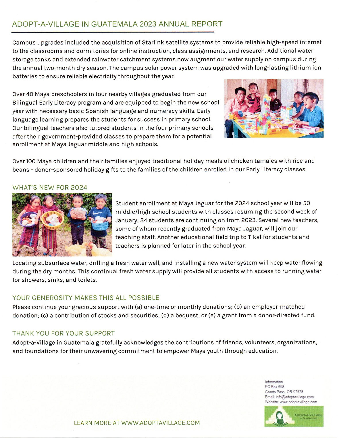 Adopt-a-Village in Guatemala Annual Report - 2023 Uncategorized Feb 1 Written By Published on: February 1, 2024